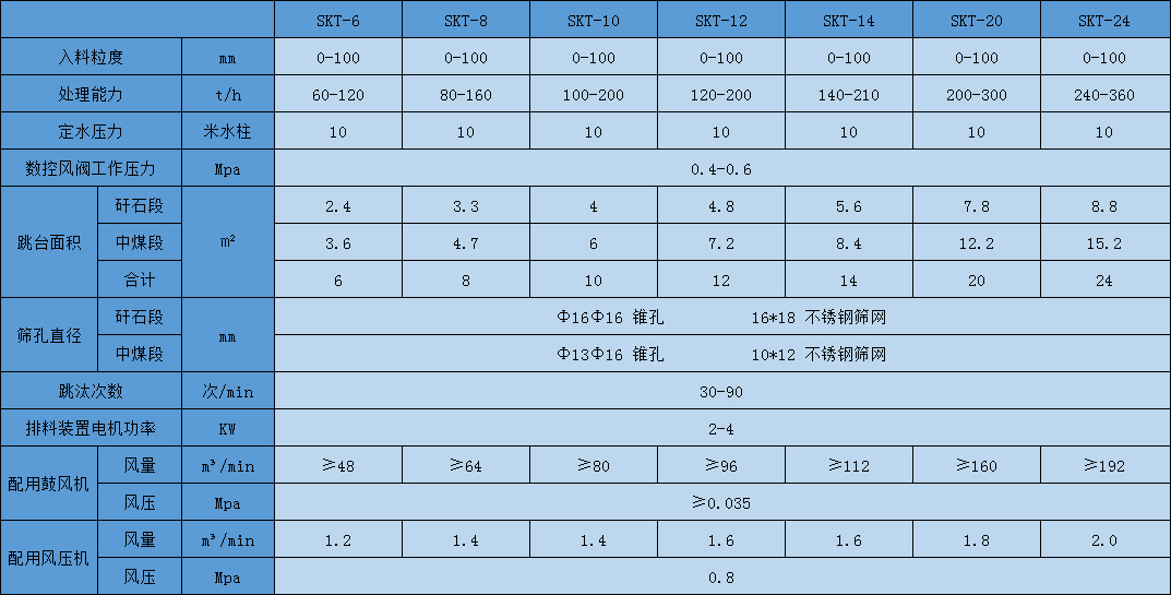 SKT系列數控跳汰機和老式跳汰機相比,效率可提高3%-5%,單位處理能力可提高20%。