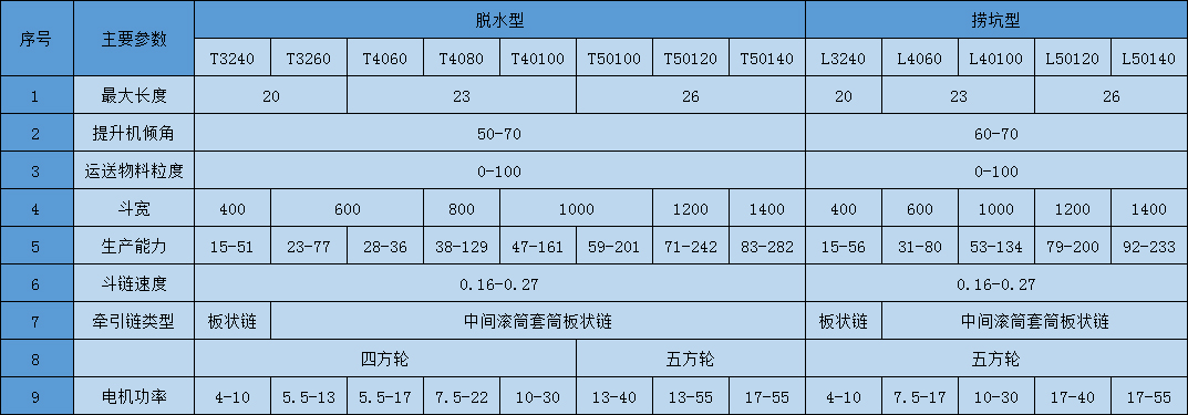 4、具有規(guī)格多、輸送量大、提升高度高、運(yùn)行平穩(wěn)、壽命長、環(huán)境污染少。